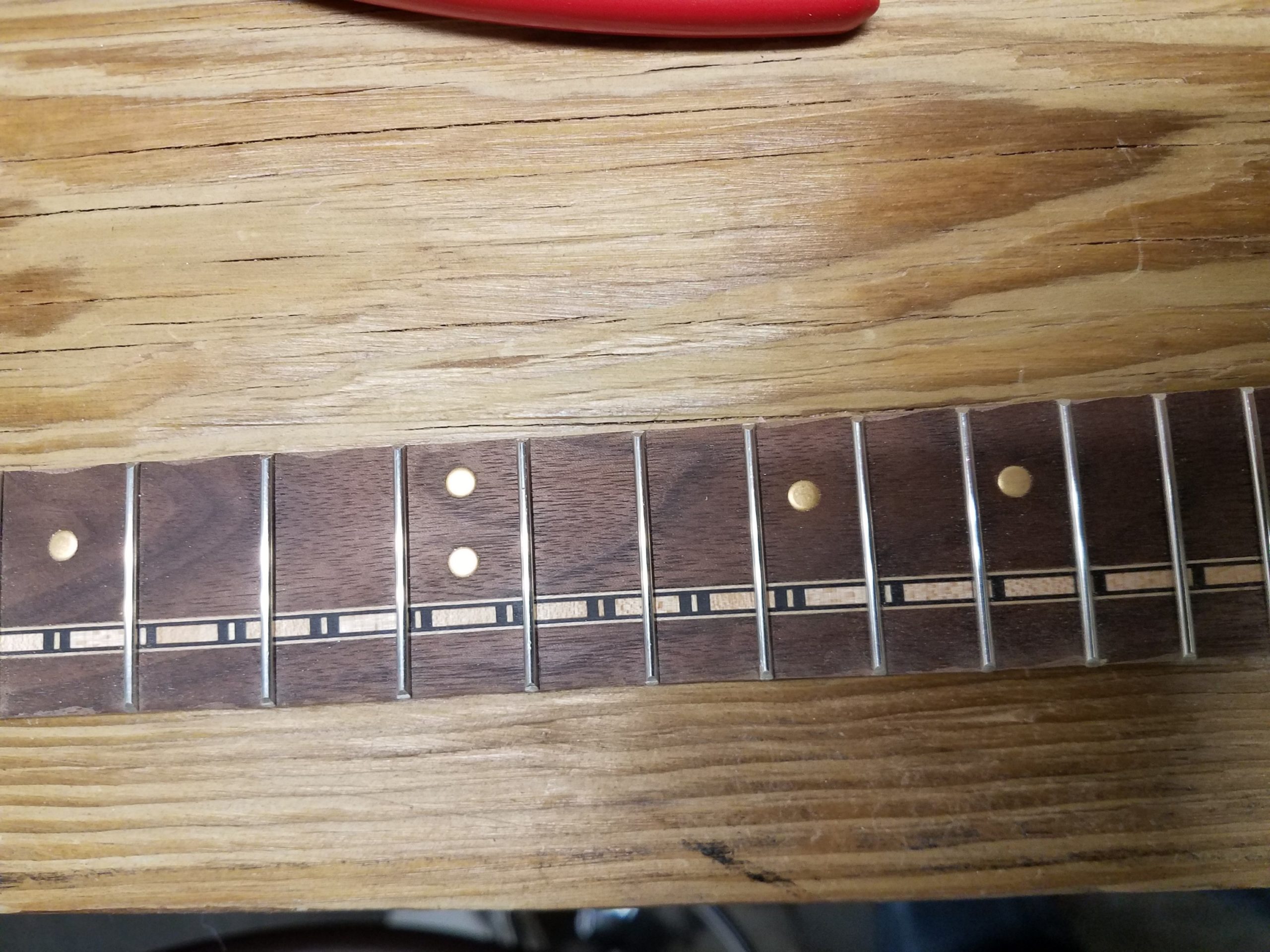 These precision fret boards can be purchased individually and are custom made using high quality and unique wood and inlay. The inlaid fret markers are brass, copper or aluminum. The frets are premium nickel-silver fretwire, which is what many companies such as Martin, Gibson and Fender use on their guitars.